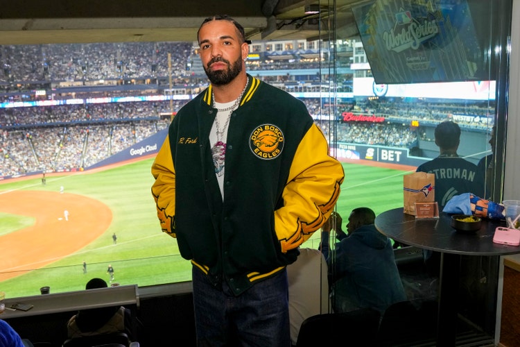 Drake poses for a photo in the suite during Game One of the 2025 World Series presented by Capital One between the Los Angeles Dodgers and the Toronto Blue Jays at Rogers Centre on Friday, October 24, 2025 in Toronto, Ontario, Canada